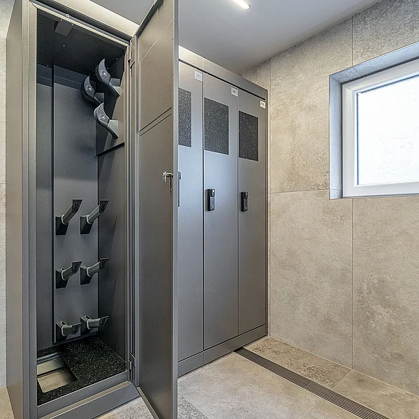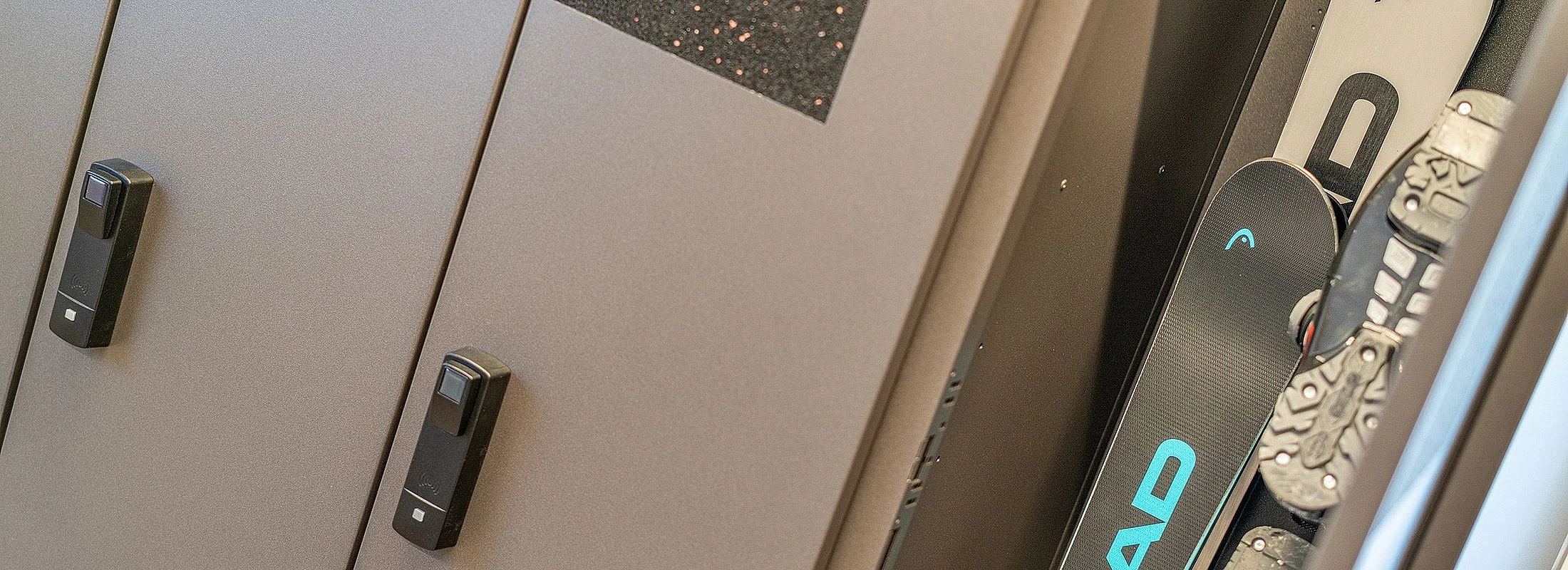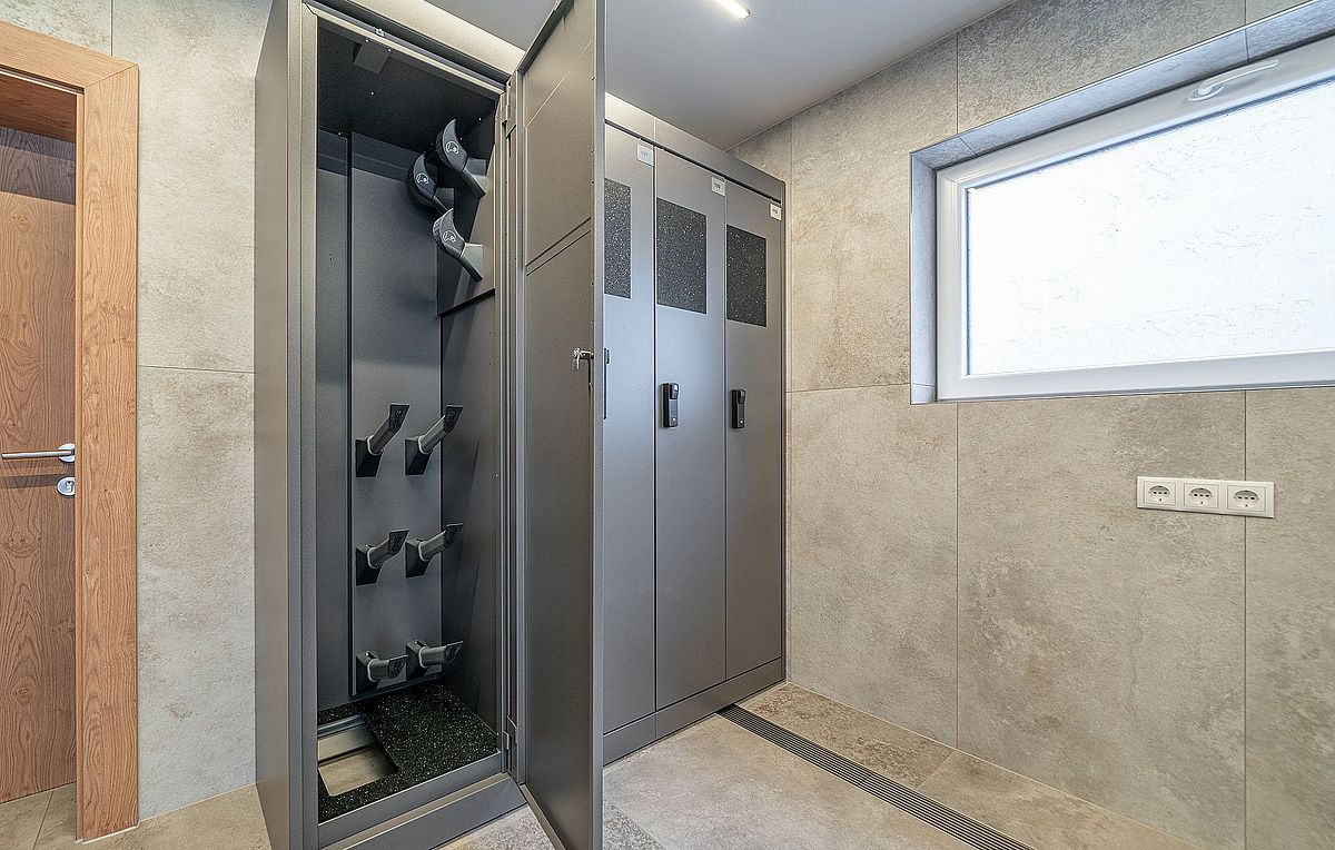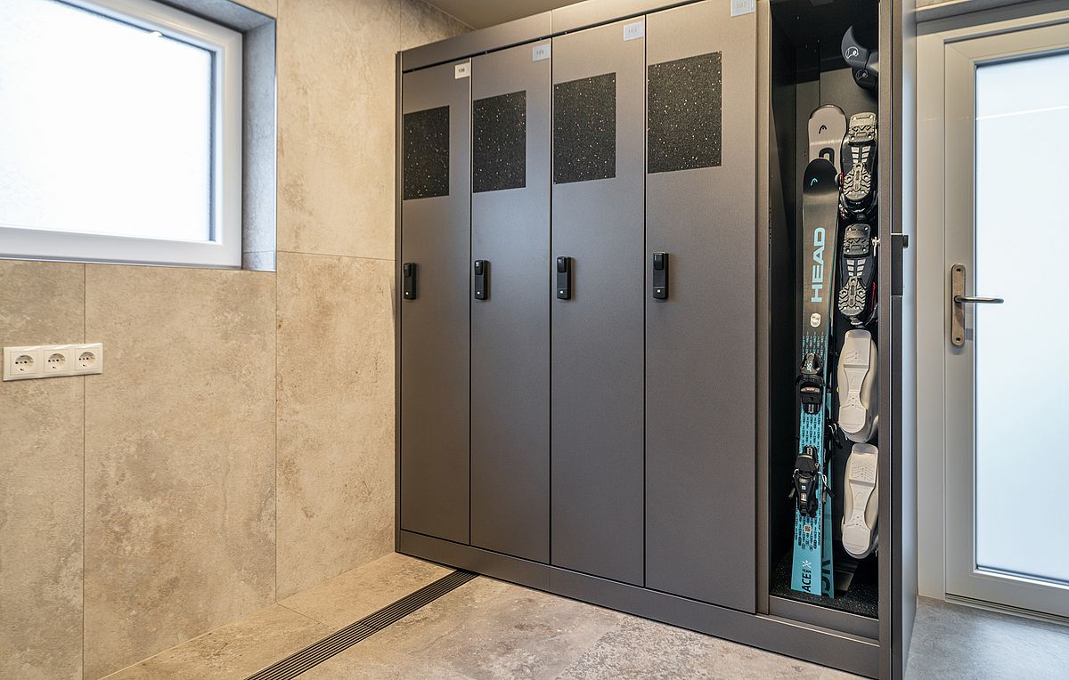 In unserem neu gestalteten Skiraum stehen Ihnen pro Zimmer persönliche Depotkästen zur sicheren Aufbewahrung Ihrer Skiausrüstung zur Verfügung.
