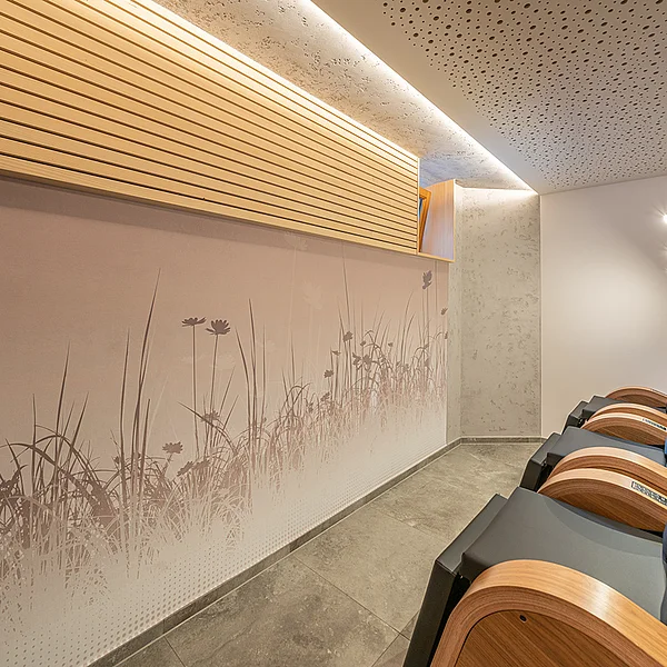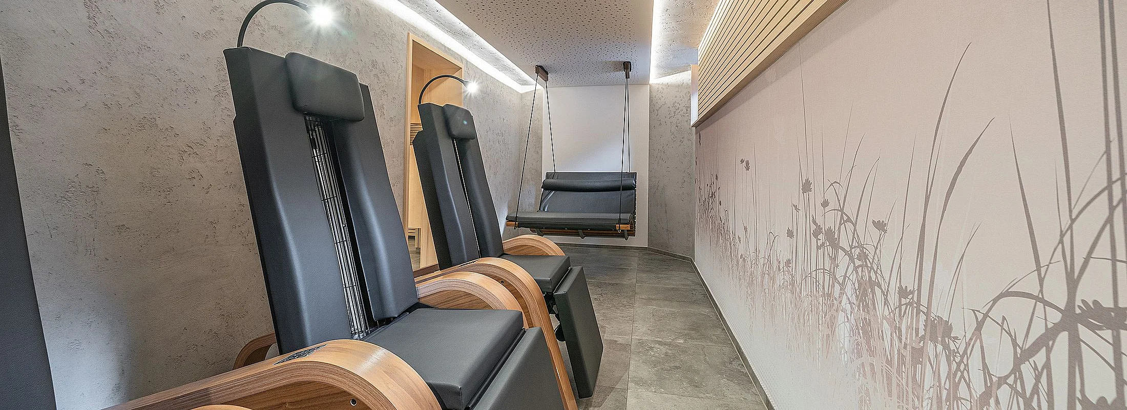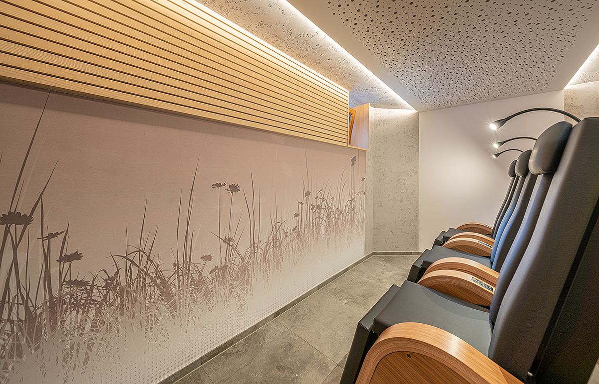 Die Infrarotliegen bieten Ihnen eine zusätzliche Möglichkeit zur Tiefenentspannung, um Ihre Muskeln nach einem Skitag oder einer Wanderung zu regenerieren. Der Ruhebereich ist modern und in warmem Holzdesign gehalten – die perfekte Wohlfühlatmosphäre für Ihre Erholung.