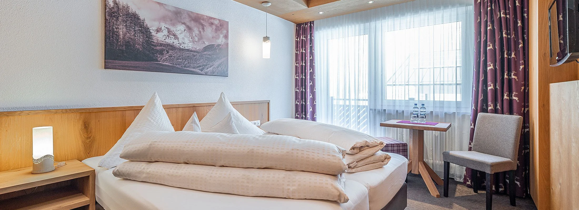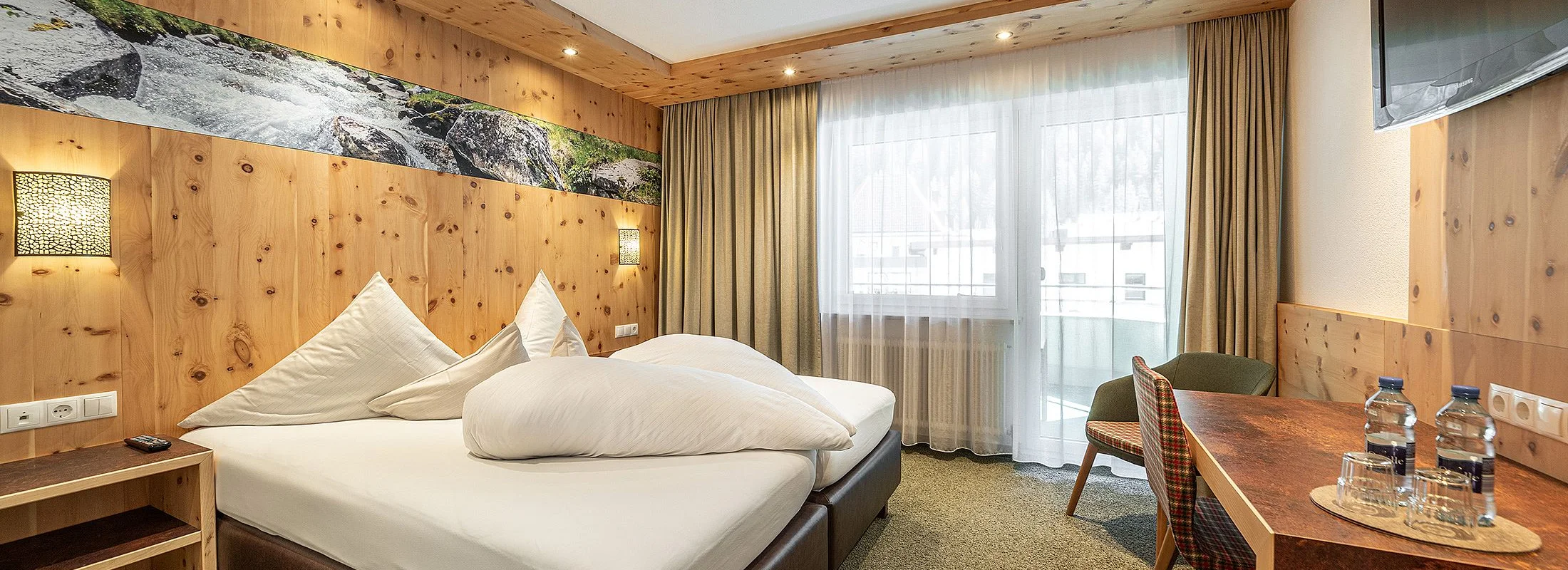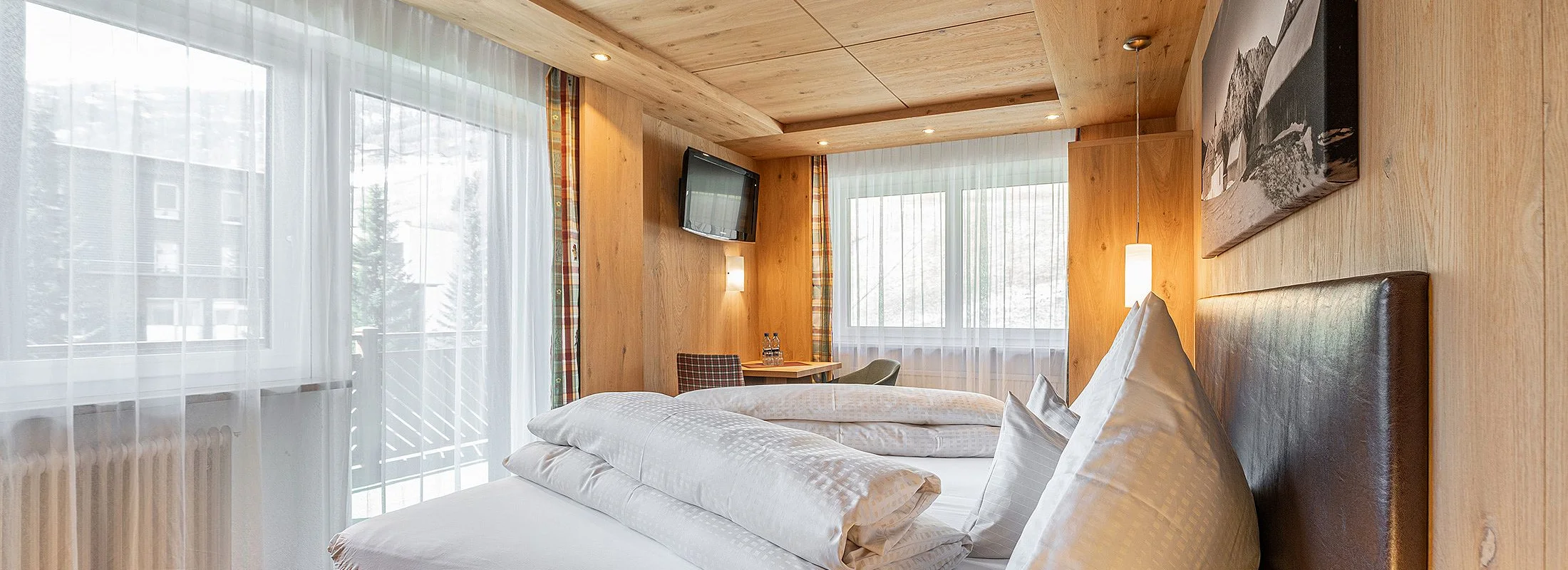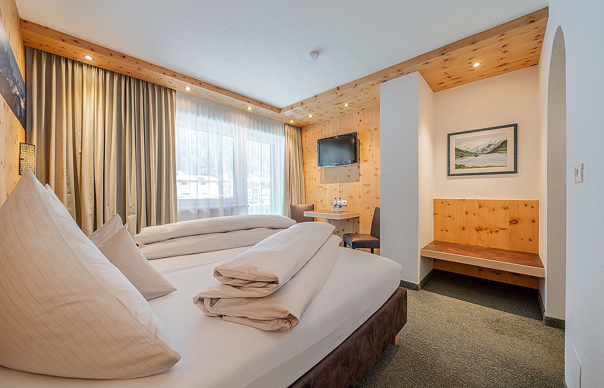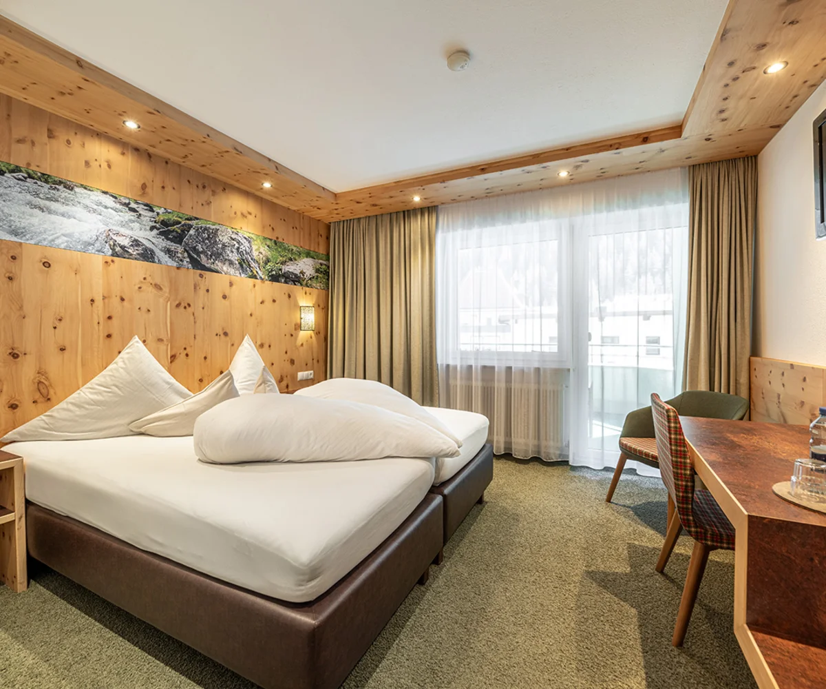 Ankommen, abschalten und sich sofort heimisch fühlen – unsere liebevoll gestalteten Doppelzimmer mit Balkon sind der perfekte Rückzugsort für erholsame Urlaubstage im Herzen der Ötztaler Alpen. Natürliche Töne, gemütliche Stoffe und – in einigen Zimmern – duftendes Zirbenholz schaffen eine behagliche Atmosphäre. Zur Ausstattung gehört ein TV, Radio, Safe, ein helles Badezimmer mit Badewanne und WC oder Dusche und WC sowie ein Haartrockner. Auf Wunsch können die Betten getrennt werden – für individuellen Komfort ganz nach Ihren Bedürfnissen. Auch eine Einzelbelegung ist möglich.